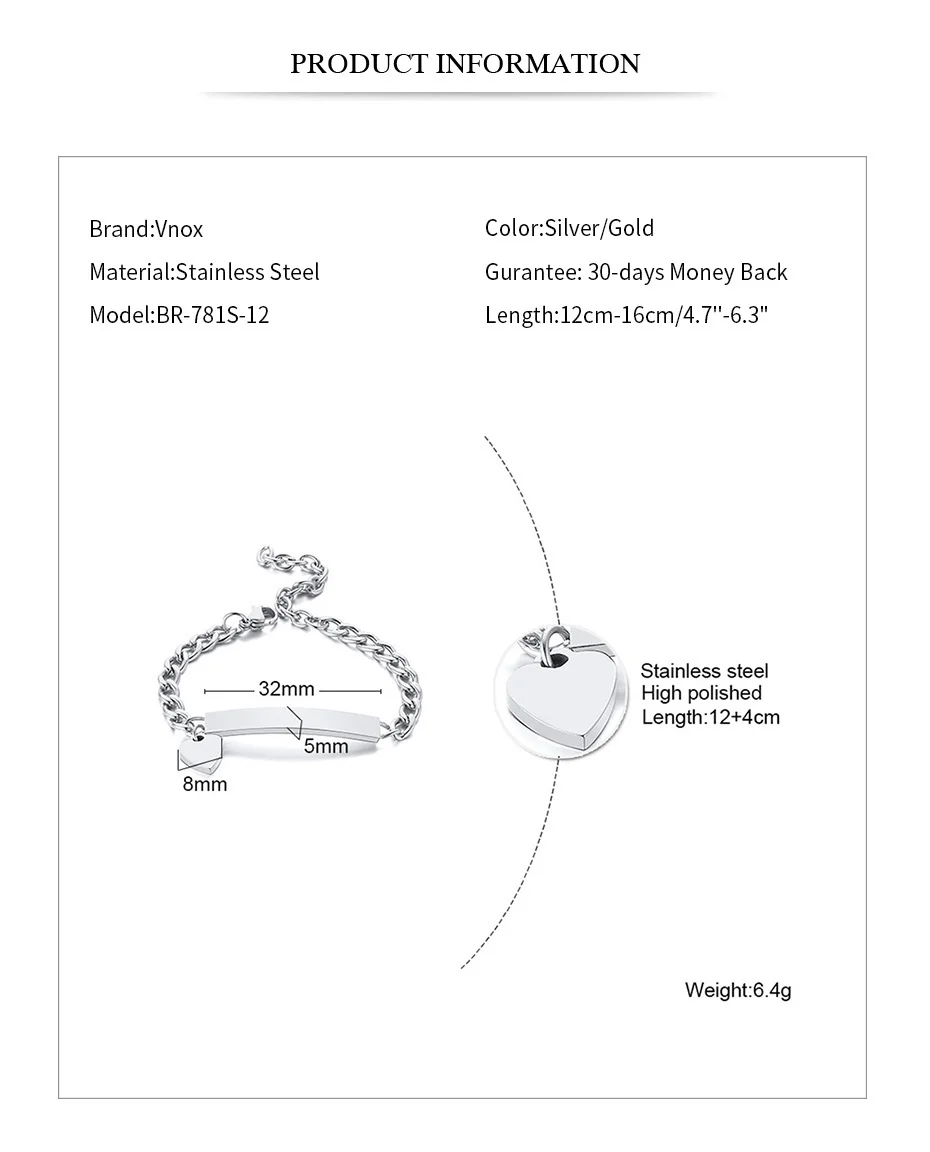 Custom Personalize Name Baby Bracelet Anti Allergy Stainless Steel Chain Adjustable