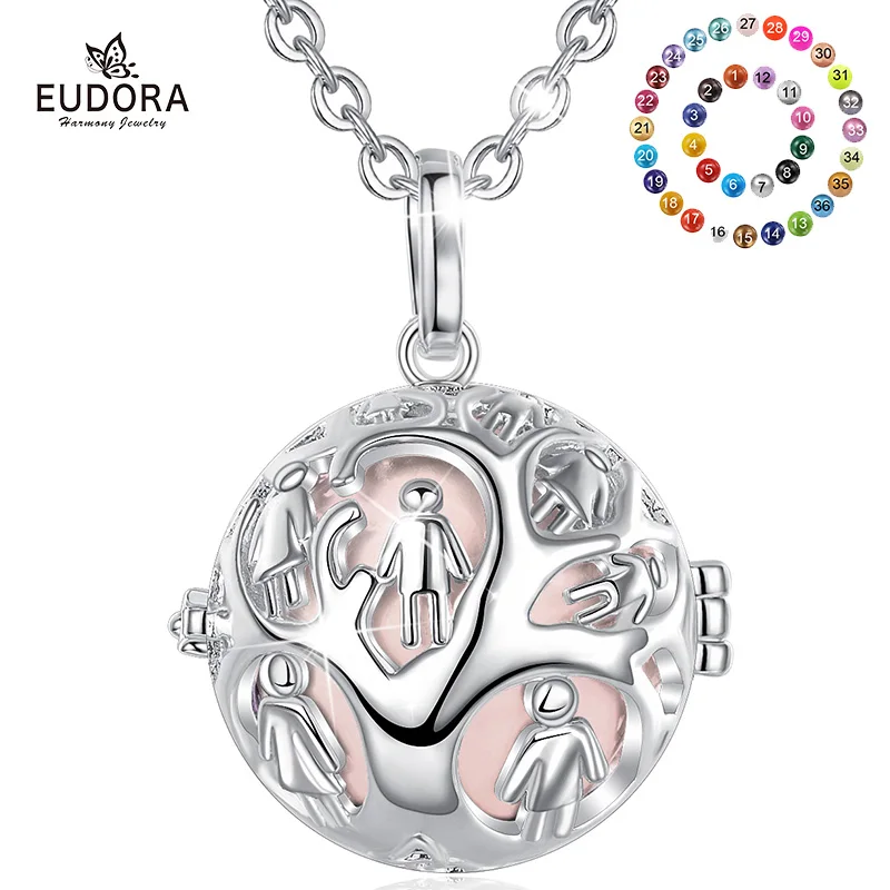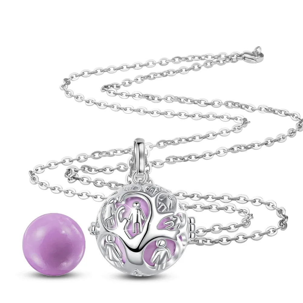 Introducing the Family Tree Locket Cage Pendant Necklace, a meaningful and elegant piece designed for expectant mothers. This necklace features a 20mm harmony ball encased within a beautifully crafted family tree locket, symbolizing the nurturing bond of family.